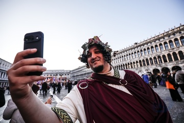 Rita Pavone receives the Ondina D'oro award at the 2026 Viareggio Carnival.