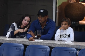 Tiger Woods z dziewczyna i dziecmi na turnieju tenisowym