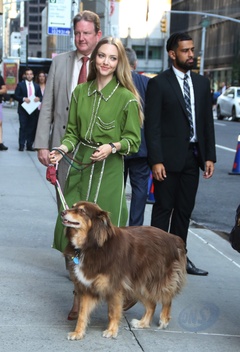 Amanda Seyfried w bialo rozowej sukience w czarne kwiaty