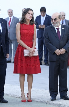 Krolowa Letizia w czerwonej sukience na inauguracji Swiatowego Centrum Zrownowazonej Zywnosci Miejskiej w Walencji