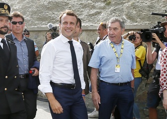 Emmanuel Macron w Tourmalet podczas Tour de France 2019