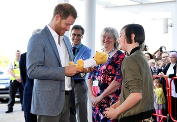 Usmiechniety i zadowolony KSIAZE HARRY podczas wizyty w OXSRAD Disability Sports and Leisure Centre