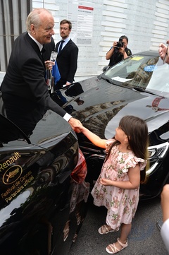Cannes - Bill Murray ze szklanka i z butelka wody wita sie z mala dziewczynka