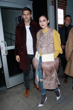 Olivia Palermo w dlugiej, futrzanej kamizelce w drodze na pokaz mody