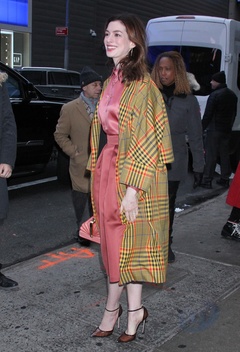 Anne Hathaway w plaszczu w kratke