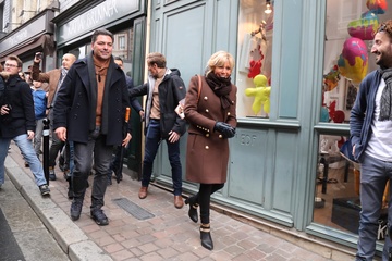 Brigitte Macron i Emmanuel Macron podczas wizyty w Honfleur