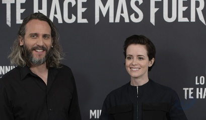 Claire Foy i Federico Alvarez na photocall The Girl in the Spiders Web, Madryt