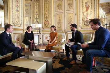 Emmanuel Macron na spotkaniu z Nadia Murad
