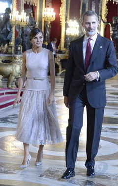 Krolowa Letizia i krol Filip na przyjeciu w palacu krolewskim z okazji Dnia Narodowego