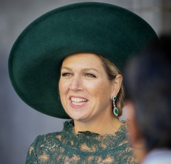 Krolowa Maxima w koronkowej, zielonej sukience i kapeluszu