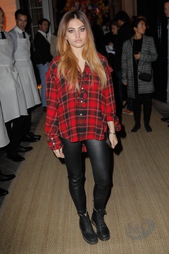 Thylane Blondeau w koszuli w czerwona krate na pokazie Ralph Lauren