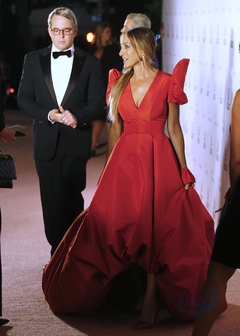 Sarah Jessica Parker w czerwonej, balowej sukni na New York City Ball