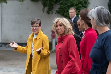 Brigitte Macron i ksiezna Mary - zwiedzaja Danie - obie w czerwieni