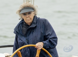 Ksiezna Beatrix w w daszku przeciwslonecznym na statku GreenDragon