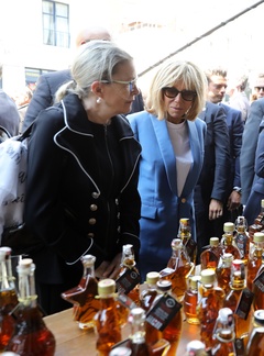 Brigitte i Emmanuel Macron degustuja alkohole w Montrealu