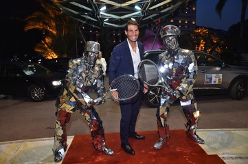 Ksiezna Charlene i ksiaze Albert pozuja z Rafaelem Nadal