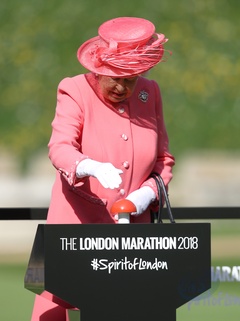 Krolowa Elzbieta II na rozowo podczas Londynskiego Maratonu