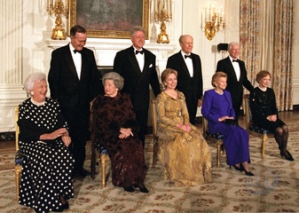 George H.W. Bush z prezydentami USA i pierwszymi damami na pogrzebie zony