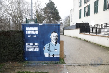 Arnaud Beltrame, zmarly, francuski policjant bohaterem graffiti