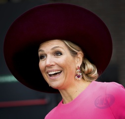 Krolowa Maxima w rozowej, neonowej sukience