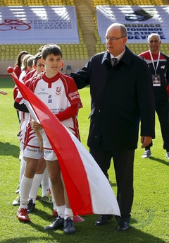 Ksiaze i ksiezna Monako z dziecmii na turnieju rugby - Sainte Devote Rugby Tournament