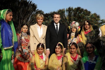 Brigitte Macron i Emmanuel Macron na boso ... New Delhi, Indie