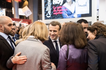 Brigitte Macron i Emmanuel Macron na targach ksiazki