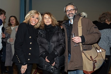 Brigitte Macron w czerwonym szalu Louis Vuitton na wystawie Detenus Bettina Rheims
