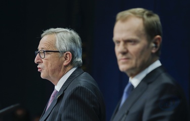 Donald Tusk i Jean-Claude Juncker podczas Szczytu UE