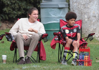 Heidi Klum z chlopakiem oglada dzieci podczas meczu