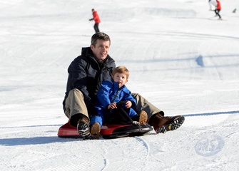 Ksiaze Frederik i Ksiezna Mary z dziecmi na sniegu w Szwajcarii