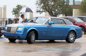 Johnny Hallyday z zona wysiada z niebieskiego Rolls-Royce