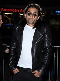 Jude Law w skorzanej kurtce wraca z teatru Landmark Sunshine, Nowy Jork