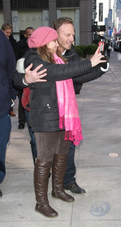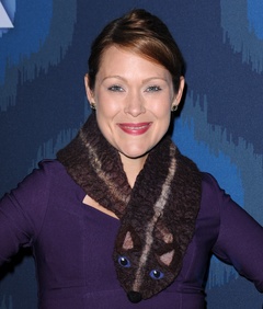 Amanda Peet w czarnym futerku przybyla do Show Lettermana, Nowy Jork