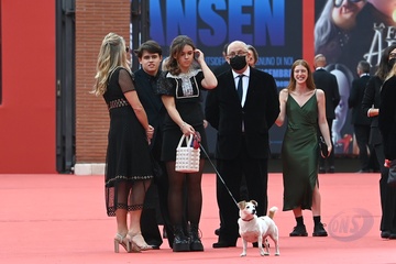 Tim Burton z dziecmi na czerwonym dywanie na Festiwalu w Rzymie