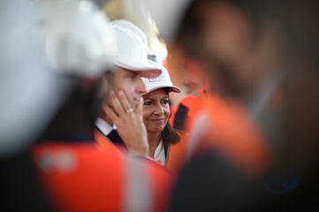Emmanuel Macron i Anne Hidalgo w przyszlym miasteczku olimpijskim