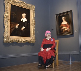 Projektantka mody Zandra Rhodes pozuje w galerii sztuki