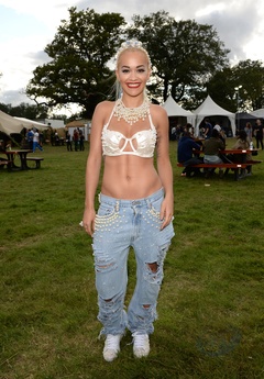 Rita Ora w biustonoszu na V Festiwalu 2014 w Hylands Park