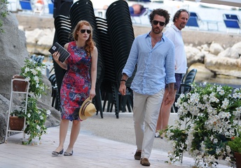 Jessica Chastain z chlopakiem podczas kolacji w Ischia