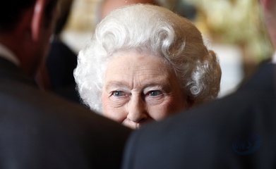 Krolowa Elzbieta II na przyjeciu w Palacu Buckingham