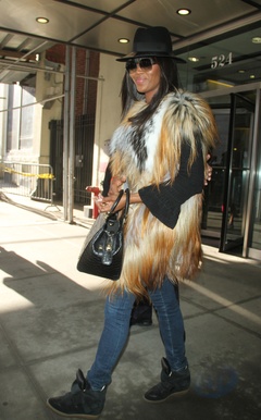 Naomi Campbell w futrzanej kamizelce, Nowy Jork