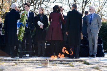 Para prezydencka sklada wieniec pod pomnikiem Johna F. Kennedy'ego, Virginia