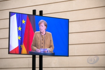 Emamnuel Macron i Angela Merkel podczas videokonferencji