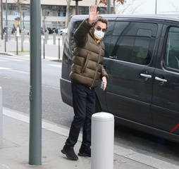 Jean-Michel Jarre w puchowej kurtce i maseczce