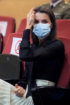 Krolowa Letizia w plisowanej spodnicy podczas ceremonii zamkniecia Projektow Spol‚ecznych Banco Santander