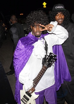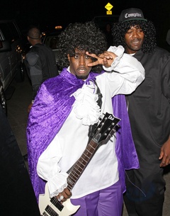 **BEST OF HOLLYWOOD HALLOWEEN** PRINCE DIDDY!! Sean Combs aka 'P-Diddy' dressed as superstar singer Prince complete with a white guitar, purple cloak and a huge wig seen leaving from the Playboy Mansion Halloween party in Beverly Hills