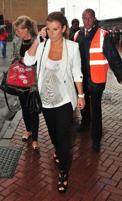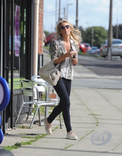 Alex Curran w marynarce przypominajacej skore weza, Liverpool
