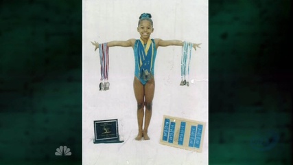 Michelle Obama i zlota medalistka Gabby Douglas w telewizyjnym show, Los Angeles