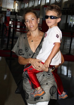 Sheryl Crow z synem na lotnisku Lax, Los Angeles