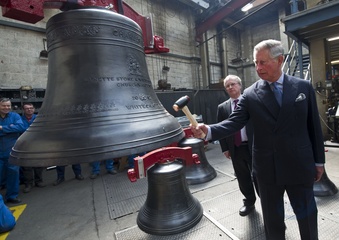 ksiaze Karol oglada dzwony w Whitechapel Bell Foundry